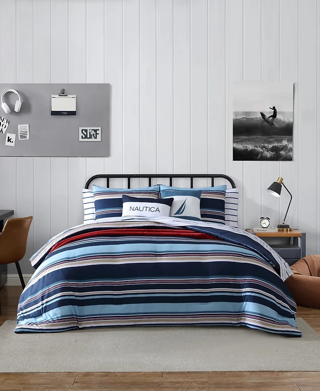 Nautica Colton Stripe 5 Piece Comforter Set, King