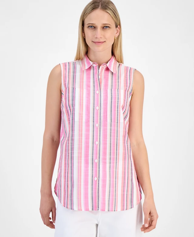 Nautica Jeans Women's Striped Sleeveless Button Shirt