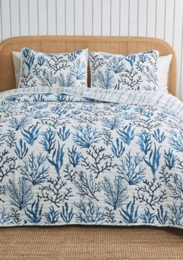 Linery Blue Coral Reversible Quilt Set