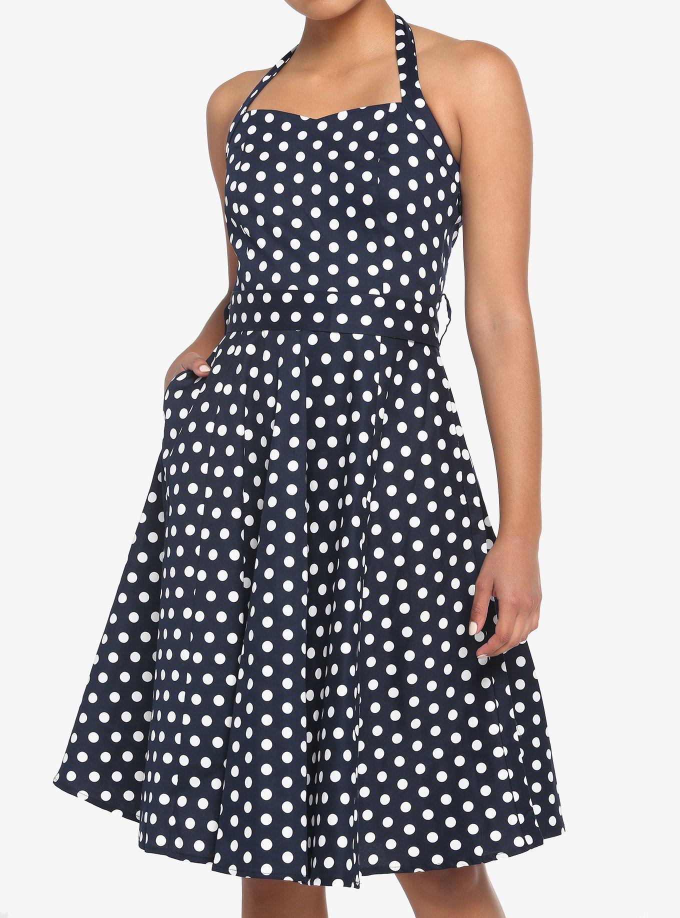 Navy Polka Dot Retro Halter Dress