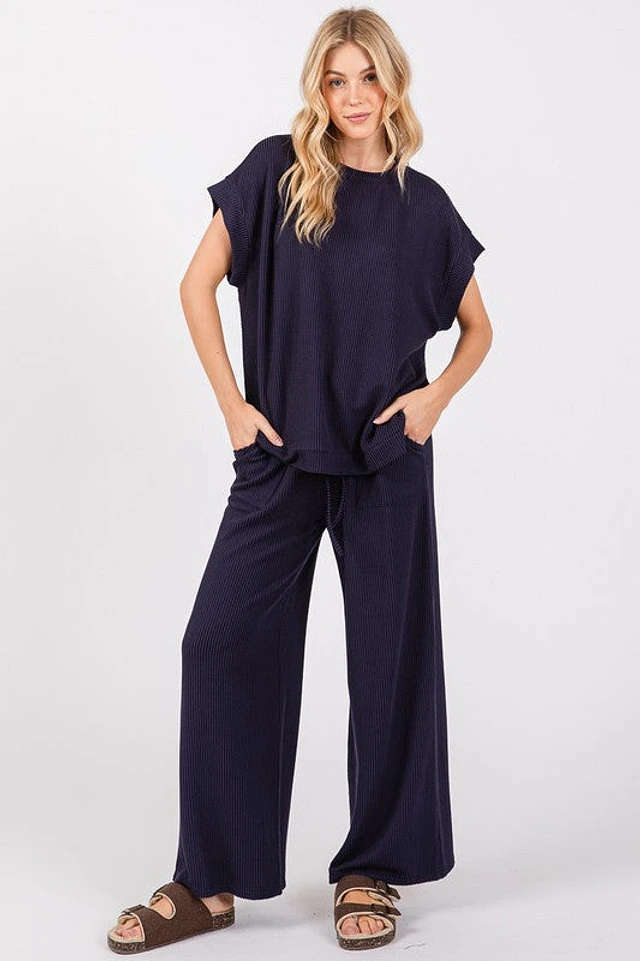 Navy Ribbed Top & Pant Set