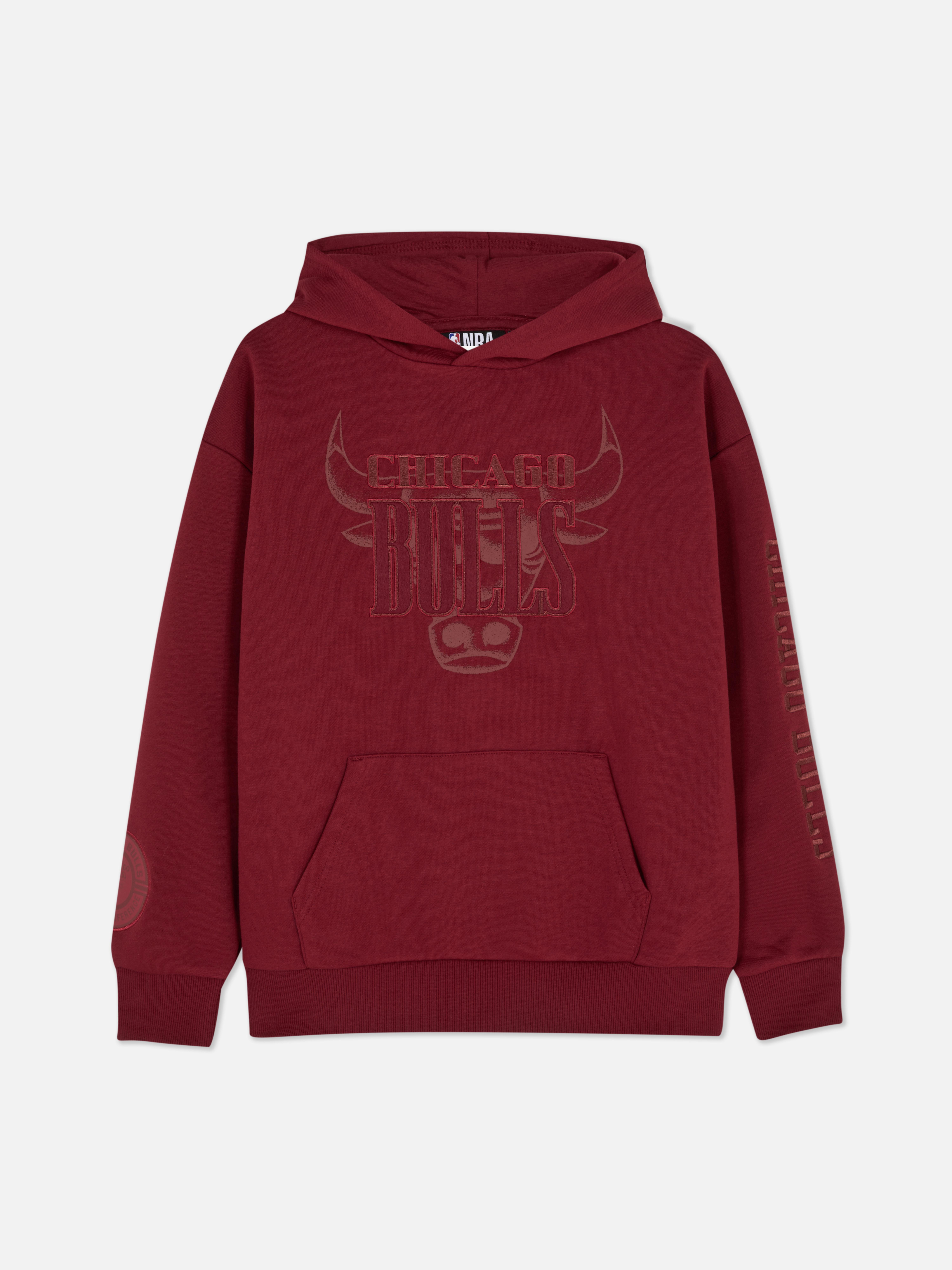 A ribbed trim kangaroo pocket hoodie with NBA Chicago Bulls branding