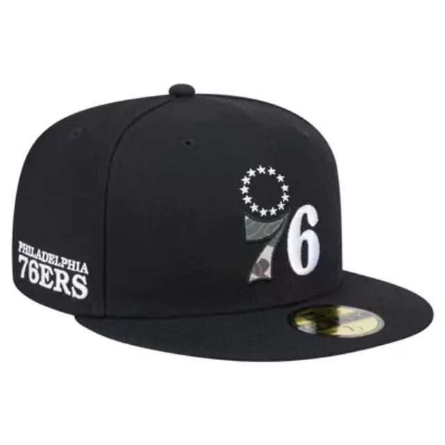 New Era Men's Black Philadelphia 76ers Camo Print Uv 59FIFTY Fitted Hat