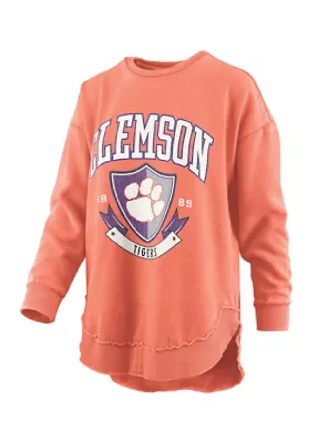 NCAA Clemson Tigers Distressed Snap Perfect Oversized Pullover Sweatshirt