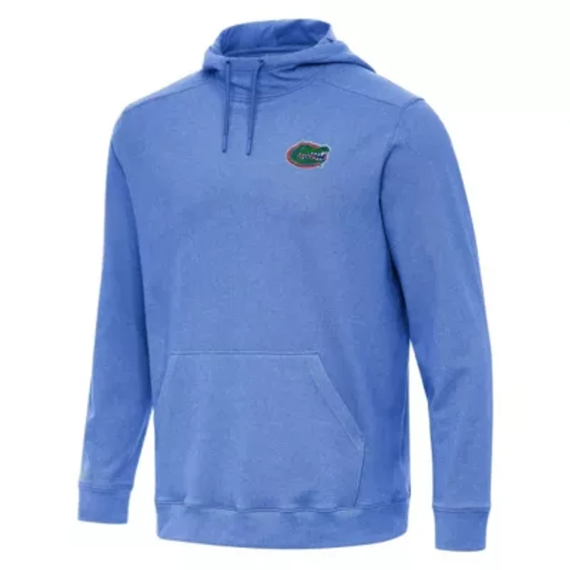 Support your Florida Gators with this Antigua Cloud Pullover Hoodie. This pullover is crafted from Antigua's signature brushed fleece fabric, creating a luxuriously soft feel that will keep you comfortable all day long. The three-panel hood with an adjustable drawstring allows for customizable coverage, while the front pouch pocket keeps your hands warm and provides convenient storage. Brand: Antigua; Embroidered team patch is heat sealed on left chest; Front pouch pocket keeps hands warm and small items easily accessible; Hooded; Imported; Long sleeve; Machine wash, tumble dry low; Material: 91% Polyester/9% Spandex; Midweight hoodie suitable for moderate temperatures; Officially licensed; Pullover; Signature brushed fleece fabric creates a ridiculously soft feel; Three-panel hood with adjustable drawstring for customizable coverage. CN-China Imported Care Machine washable or hand wash for best results