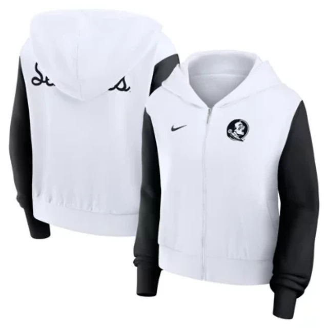 Nike Women's White Florida State Seminoles Cropped Beyond Capability Color-Block Script Full-Zip Hoodie