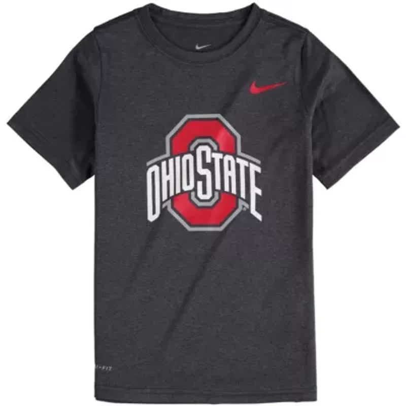 Give your kiddo a boost of team spirit with this Ohio State Buckeyes Logo Legend Performance T-shirt from Nike. It features a bold graphic on the front of a tee that's been integrated with moisture-wicking Dri-FIT technology. When the next Ohio State Buckeyes game day rolls around, your young fan is sure to stay cool and dry in this shirt. Brand: Nike; Crew neck; Dri-FIT technology wicks away moisture; Imported; Machine wash, tumble dry low; Material: 100% Polyester; Officially licensed; Screen print graphics; Short sleeve; Tagless collar. MX-Mexico Imported Material & Care 100%Polyester Machine washable or hand wash for best results