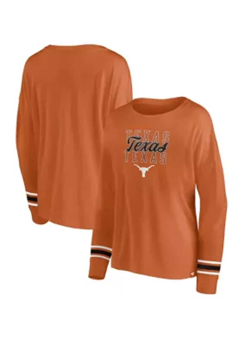 Decorated with stripes along the sleeves and a Texas Longhorns-inspired design, this t-shirt from Fanatics is perfect to wear to the next game. Pullover Round neck Long set-in sleeves Unlined Imported Product Specifications 27" L Material & Care Cotton, polyester Machine washable