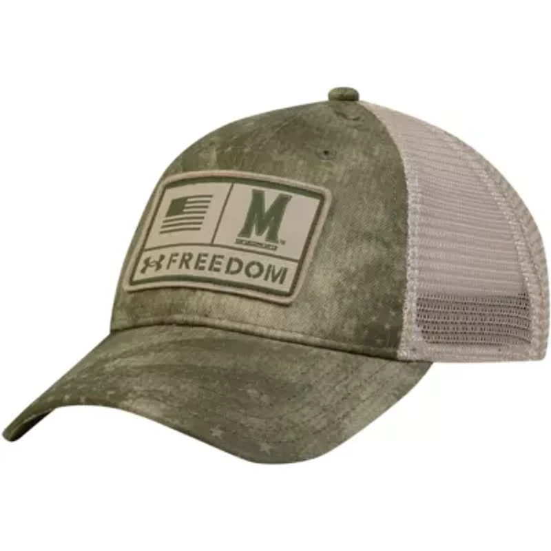 For a simple and sweet addition to your Maryland Terrapins wardrobe, choose this Under Armour Blitzing trucker adjustable hat. Featuring bold Maryland Terrapins graphics and a curved brim, this striking cap is designed to capture attention wherever you wear it. Better still, the breathable mesh mid and rear panels combined with heat-dispersing Iso-Chill technology allow you to enjoy a breezy fit that will keep your head cool all day long. Brand: Under Armour; Built-in sweatband wicks away sweat to keep you cool and dry; Curved bill; Embroidered fabric applique; Embroidered graphics; Imported; Iso-Chill fabric helps disperse body heat, making it feel cool to the touch; Low Crown; Material: 100% Polyester; Mid and rear mesh panels; Officially licensed; One size fits most; Snap Closure; Solid front panels with eyelets; UPF 50+ protection; Unstructured relaxed fit; Wipe clean with a damp cloth. CN-China Imported Product Specifications 6.30 x 8.20 x 0.50 Material & Care 100%Polyester Machine washable or dry clean for best results