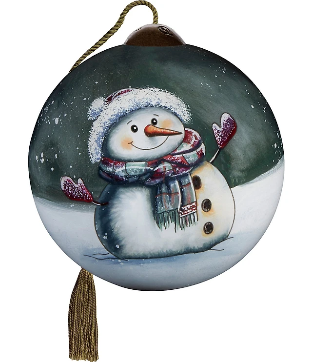 Ne' Qwa Art Small Snowman with Mittens Hand Painted Blown Glass Ornament