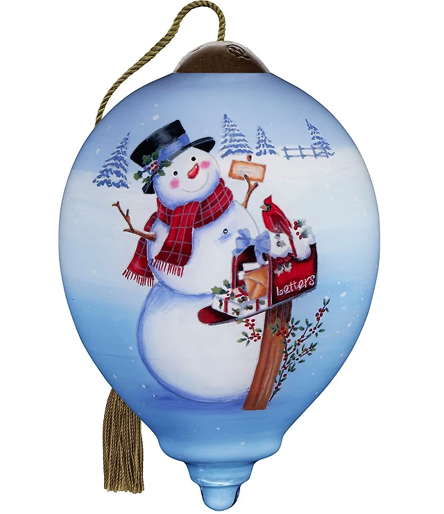 Ne' Qwa Art Snowman by Mailbox Hand Painted Blown Glass Ornament