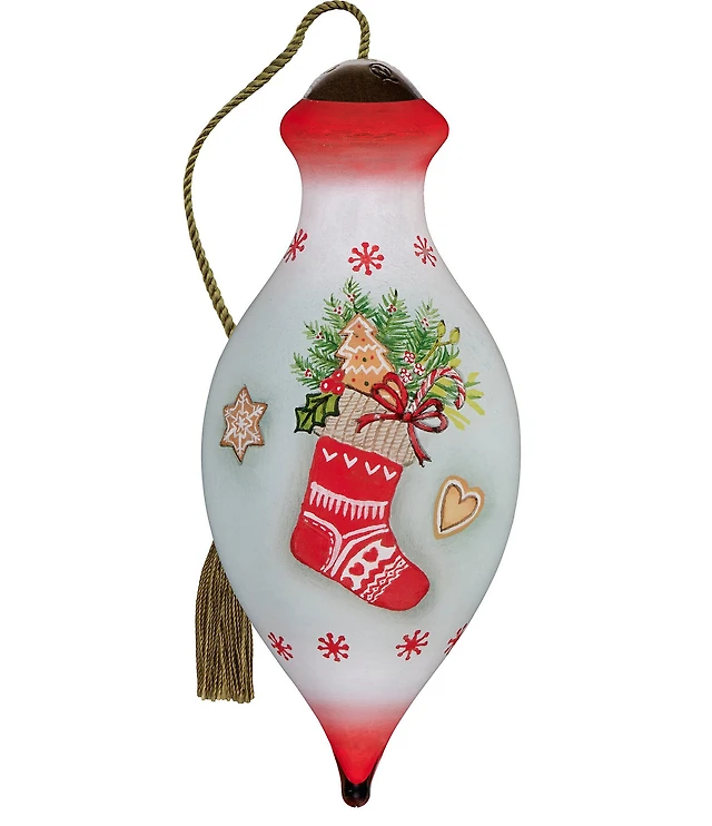 Ne' Qwa Art Stocking with Gingerbread Hand Painted Blown Glass Ornament