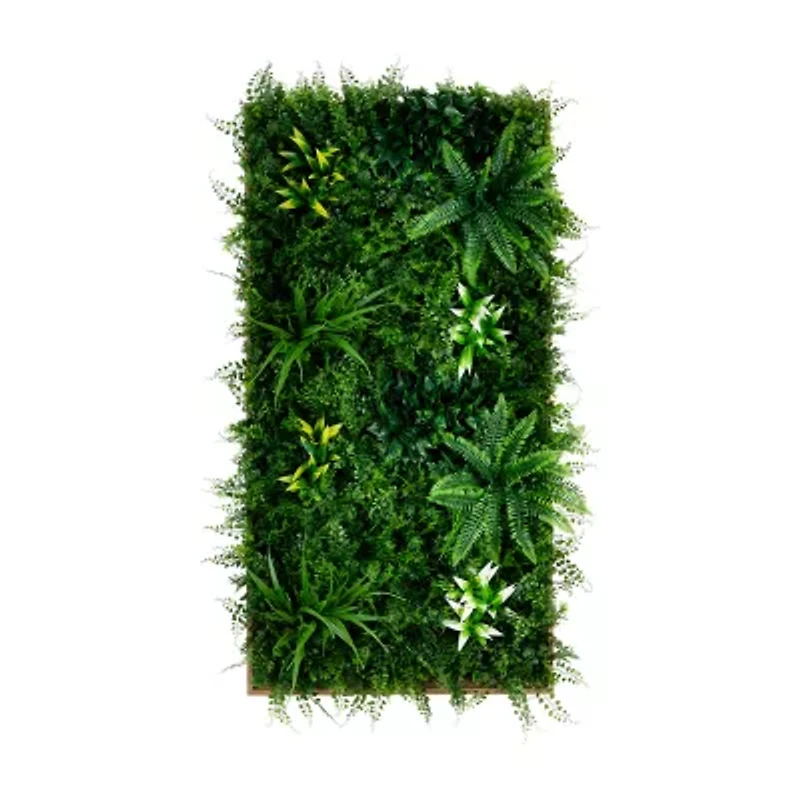 Give your home a designer-approved makeover with the 20-in x 40-in UV resistant costa-rican forest artificial dense fern living wall panel in a dark wood-like frame. Inspired by the jungles of central America, bring a touch of the wild indoors, without the maintenance. Verdant, tropical plants and ferns accent this living wall for visual interest, just as in the wild. Easy to hang, it's ideal for both homeowners and renters alike. Curate your dream home today, safe to use indoors and out.