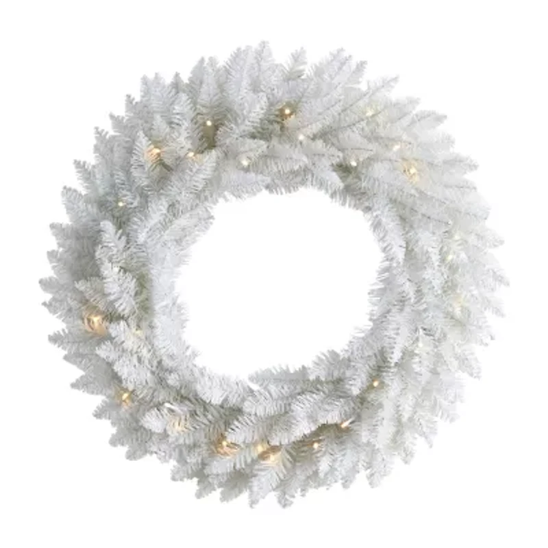 Nearly Natural 24in. Spruce Artificial Pre-Lit Wreath