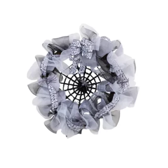 Nearly Natural 26" Halloween Spider Web Mesh Wreath