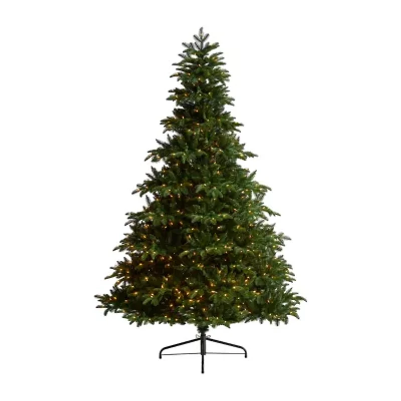 Evoke a traditional Christmas scene with this South Carolina spruce artificial Christmas tree. Incredibly lifelike with a full-figured silhouette that mimics the texture and foliage of real evergreens. Made up of 3412 easy-to-bend branches, easily diy, shape, and fluff to fit your space. Pre-strung with 700 warm white lights, create a holiday aglow wherever displayed. Standing at 8ft., from a metal stand (included in height), curate in areas with tall ceilings such as living rooms, offices, and foyers. This mini tree requires no maintenance nor set up! Display your Christmas accents for years to come. Faux Christmas trees are manufactured using synthetic materials, such as polyester material or plastic, and are well designed and constructed to be life-like in appearance. This item will need to be re-shaped when removed from the secure box to allow it to reach its fullest size. Your artificial Christmas tree will look beautiful for years to come; simply wipe clean with a soft dry cloth when needed.