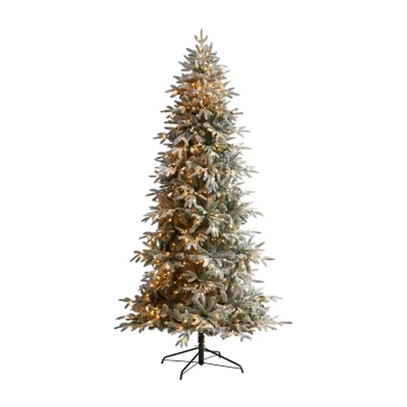 Nearly Natural Flocked Faux 8 1/2 Foot Pre-Lit Spruce Christmas Tree