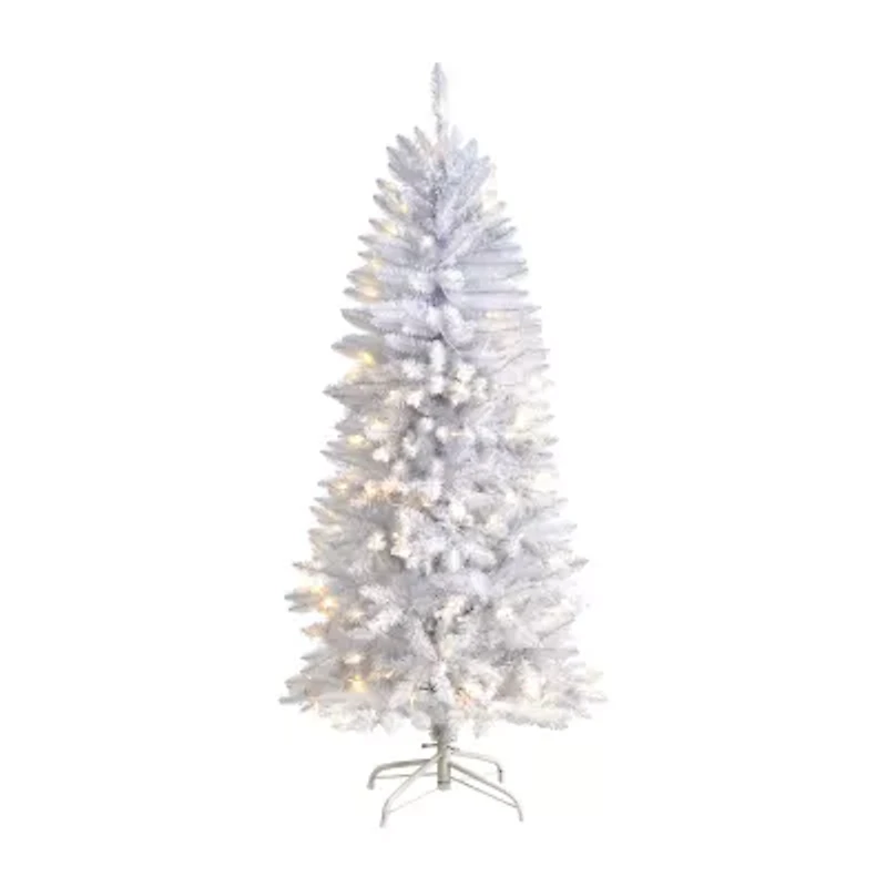 Are you dreaming of a white Christmas? Fulfill all your dreams with this white artificial Christmas tree. Inspired by nature, this tree has a slim silhouette that mimics its real counterparts' natural foliage and texture. With 491 bendable branches, you can easily display all your favorite ornaments. Save time and money with the pre-strung 150 lights. Standing 5ft. from a metal stand, curate in any compact area. Perfect for an apartment, kids' room, or home office. Faux Christmas Trees are manufactured using synthetic materials, such as polyester material or plastic, and are well designed and constructed to be life-like in appearance. This item will need to be re-shaped when removed from the secure box to allow it to reach its fullest size. Your artificial Christmas Tree will look beautiful for years to come; simply wipe clean with a soft dry cloth when needed.