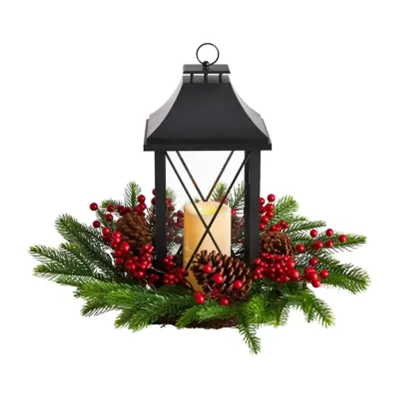 Get cozy during the most wonderful time of the year. Set the scene this season with this Christmas-inspired lantern that looks straight from a holiday movie. Soft-hued evergreens are accented by berries and pinecones, inspired by nature; this piece is incredibly lifelike. Crafted from high-quality materials, this lantern will last awhile. Standing 15", house in any space in need of holiday cheer. Perfect for an outdoor patio, dining table or kitchen nook. Artificial arrangements are manufactured using synthetic materials, such as polyester material or plastic, and are well designed and constructed to be life-like in appearance. This item will need to be re-shaped when removed from the secure box to allow it to reach its fullest size. Your arrangement will look beautiful for years to come; simply wipe clean with a soft dry cloth when needed.