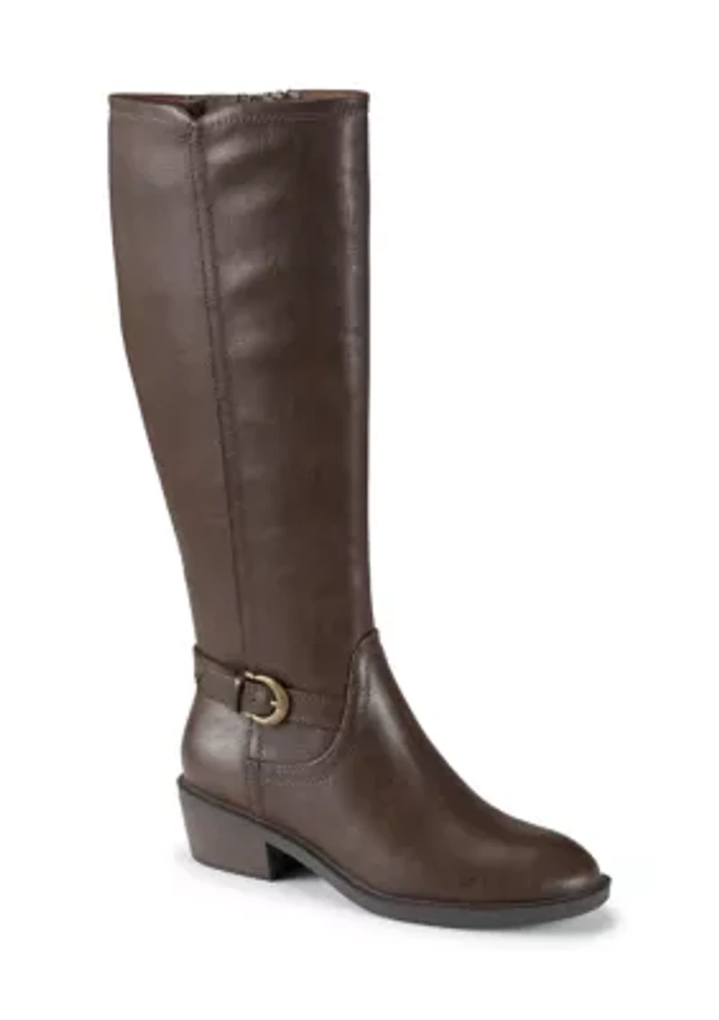 These riding boots from Baretraps® offer both style and practicality. Experience all-day comfort with a cushioned insole and a moisture-wicking footbed. These boots are perfect for any activity, providing a blend of fashion and function. Zip closure Comfort technology Imported Product Specifications 1.5" heel 14.75" shaft height 14.88" calf circumference Medium width Material Polyurethane