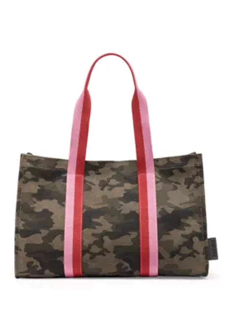 Carry your essentials in style with this beautifully crafted DKNY tote. It features a spacious interior with a convenient pouch to keep your belongings organized. The comfortable double top handles and a 9.25" drop length make it easy to carry, while the single front external pocket adds extra functionality. 9.25" drop double top handles Interior pouch Imported Product Specifications 16.25" L x 12" H x 6.75" H Material & Care Cotton Spot clean only