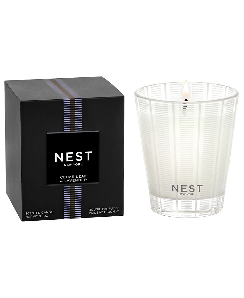 Create a calming sanctuary with this Nest New York classic candle that exudes earthy and woody fragrances, with its rosemary, lavender, sage, and cedar leaves blend. It fills your space with soothing, spa-like notes, great for relaxation.