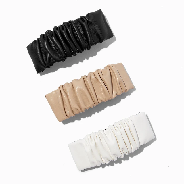 Neutral Leather Cinched Rectangle Hair Clips - 3 Pack