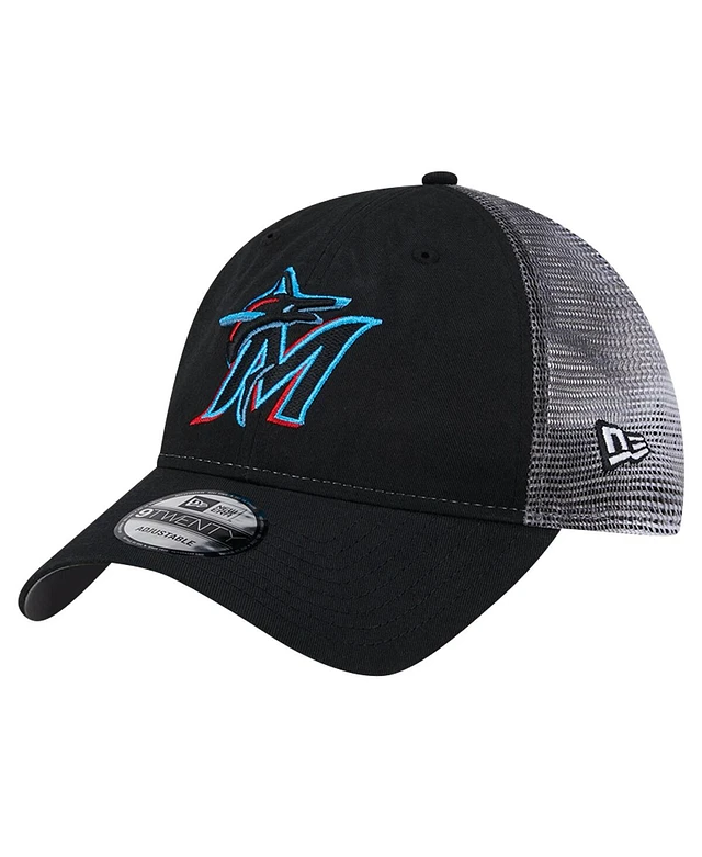 New Era Men's Black Miami Marlins Team Slick Trucker 9TWENTY Adjustable Hat