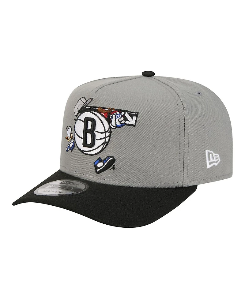 New Era Men's Gray Brooklyn Nets Injection Cartoon Logo A-Frame 9FIFTY Adjustable Hat