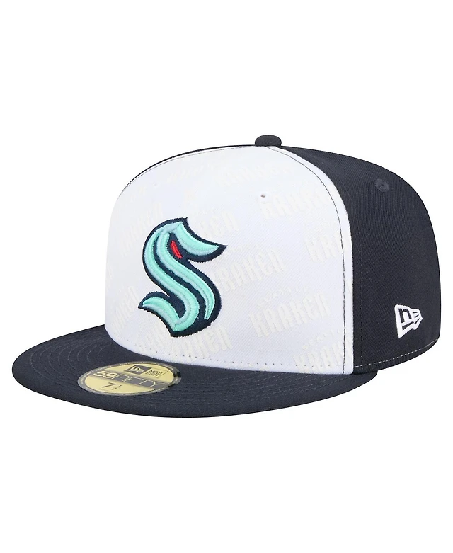 New Era Men's White/Deep Sea Blue Seattle Kraken Repeat Two-Tone 59FIFTY Fitted Hat