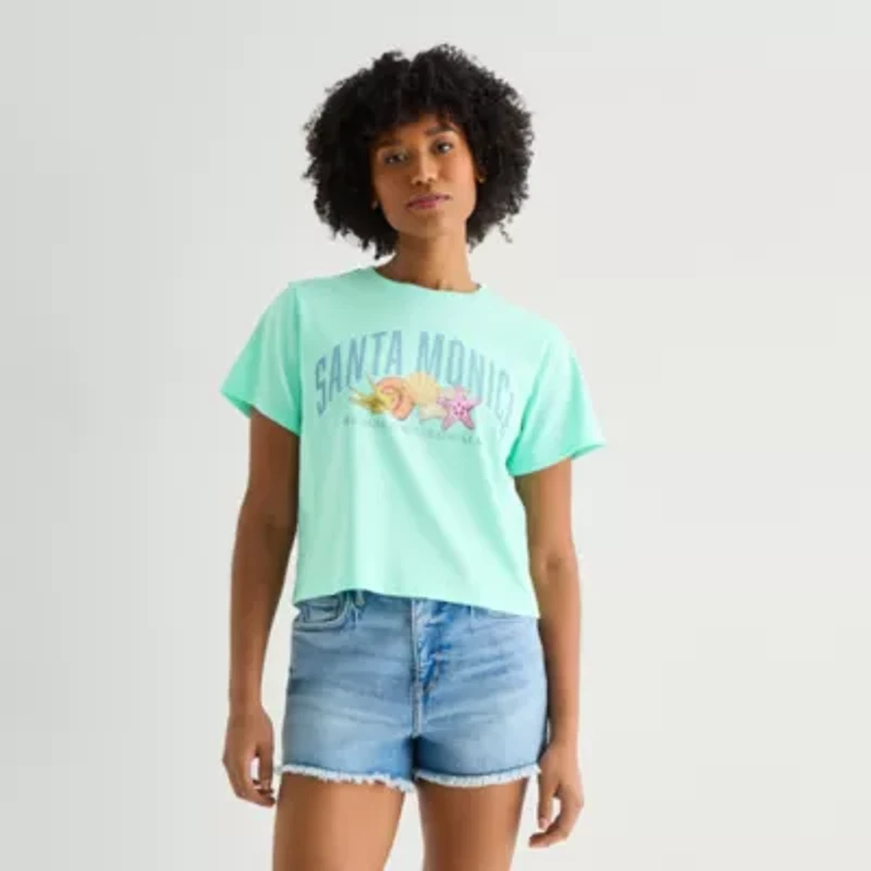 New World Santa Monica Baby Womens Juniors Crew Neck Short Sleeve Classic Fit Graphic T-Shirt in Franklin, TN