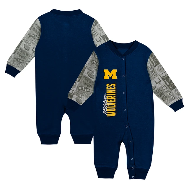 Newborn & Infant Navy Michigan Wolverines Playbook Colorblock Long Sleeve Coveralls