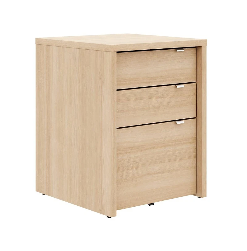 Chrono 3-Drawer Filing Cabinet from Nexera features 2 catch-all drawers on metal slides at the top and 1 legal size filing drawer at the bottom. The filing drawer is mounted on heavy duty full extension ball bearing slides giving you full access to all of your files, even the ones at the far back. An anti-tilt safety device and adjustable levelers are also included for optimal use. Use the Chrono Filing Cabinet with Chrono Reversible Desk Panel to create a flexible work station or pair it with other Chrono items to add storage and functionality in the living room and the office areas. Chrono Collection is entirely modular and offers unlimited mix and match possibilities to create your own perfect entertainment or home office room settings. .
