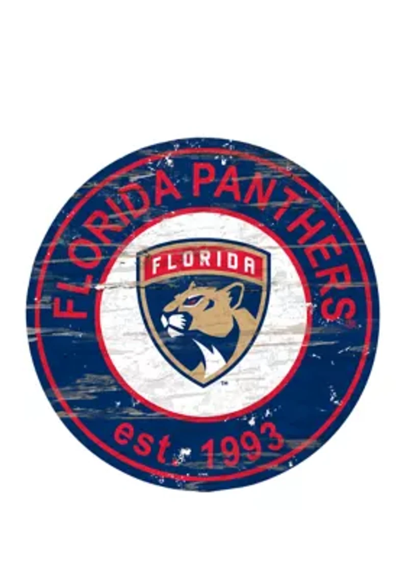 NHL Florida Panthers Distressed Round Sign