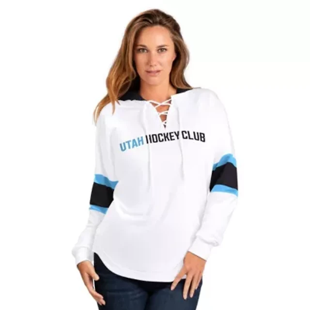 G-iii 4Her by Carl Banks Women's White Utah Hockey Club Goal Zone Long Sleeve Lace-Up Hoodie T-Shirt