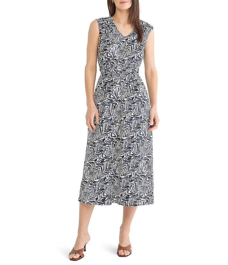 NIC + ZOE Inked Lines Dierdre V-Neck Sleeveless Midi Dress