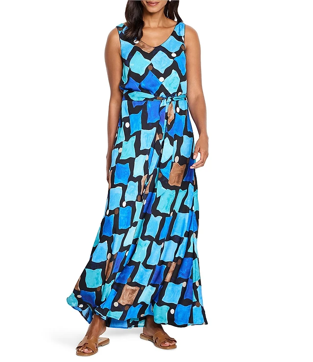 NIC + ZOE Sea Glass V-Neck Sleeveless Tie Waist Maxi Dress