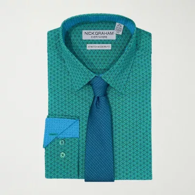 Nick Graham Mens Spread Collar Long Sleeve Stretch Fabric Shirt + Tie Set