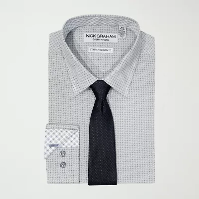 Nick Graham Mens Spread Collar Long Sleeve Stretch Fabric Shirt + Tie Set