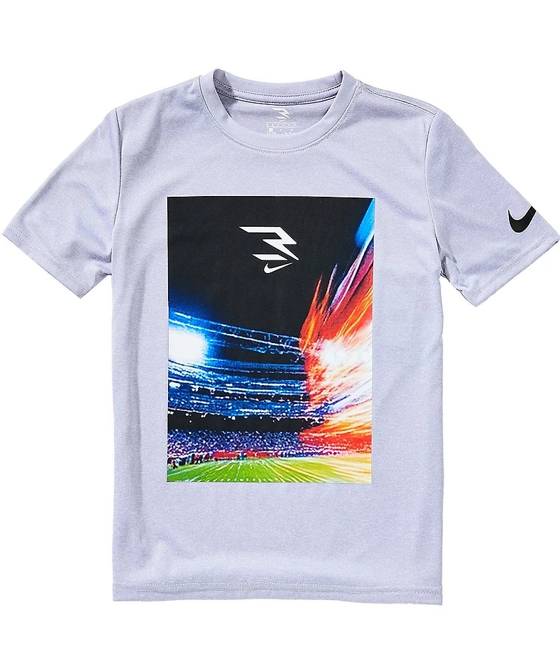 From Nike, this t-shirt features: Smooth jersey fabric Moisture-wicking Dri-FIT technology Crew neck Short sleeves Graphic print on the front Regular fit Pullover Polyester Machine wash/tumble dry Imported.