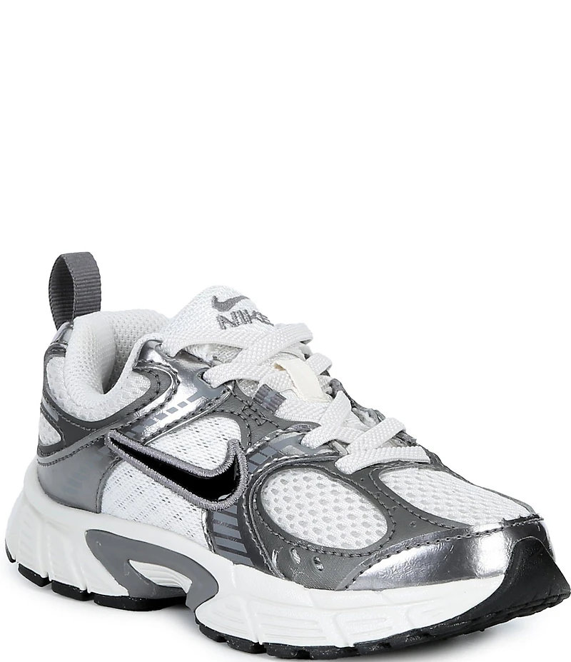 From Nike, the Boys' V5 RNR PS Running Sneakers feature: Mesh upper with synthetic leather overlays is breathable and durable Classic lace-up closure Plush collar lining works with foam midsole to provide all-day comfort Staying true to its Y2K roots, the V5 RNR has a chunky yet lightweight foam midsole Rubber outsole with '00s-inspired grooves adds great traction. Imported.