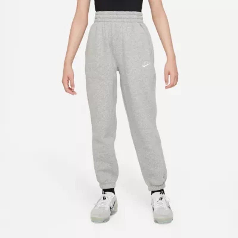 Nike Sportswear Club Fleece Big Kids' Loose Pants. Meet our favorite cozy essential. Made from lightweight fleece that's smooth on the outside and brushed soft on the inside, these sweats are an easy layer when you want a little extra warmth. A loose fit through the legs helps make them feel extra comfy. We evolved our size range to focus on fit, not gender, to let every kid play their way. Stretchy elastic waistband with drawcord helps make it easy to dial in your perfect fit.