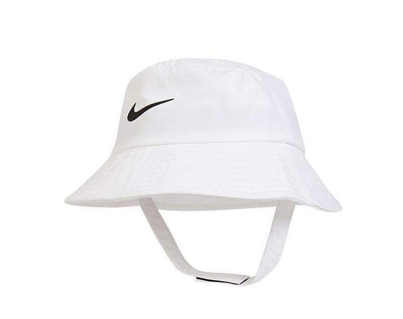 Nike Kids Bucket Hat Protect your bucket of sunshine with the Nike® Bucket Hat. The UPF 40+ fabric and brim design work to shield rays, while the cotton sweatband helps keep them cool. The chinstrap with hook-and-loop tape keeps the hat securely on for all-day play. The Nike® Bucket Hat provides sun protection where it covers, but a good sunscreen is always recommended!