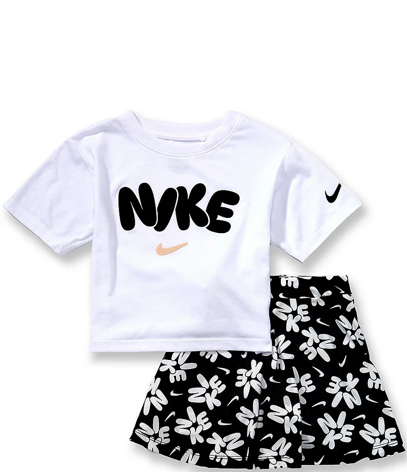 Nike Little Girls Short Sleeve Bold Play Tee & Scooter Skort 2-Piece Set