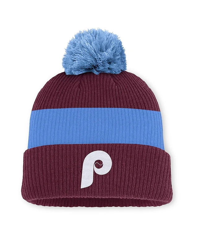 Nike Men's Burgundy/Light Blue Philadelphia Phillies Cooperstown Collection Peak Standard Cuffed Pom with Knit Hat