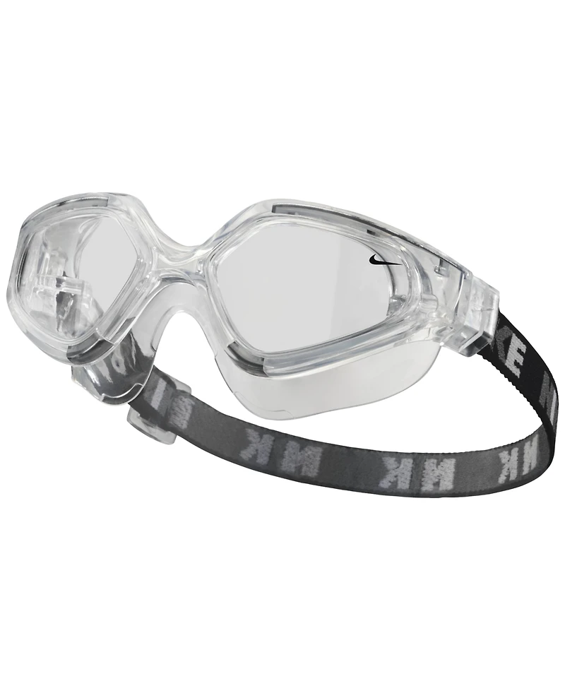 Keep your fitness goals in sight. These Nike pool goggles are made from ultra-soft liquid silicone with flex points that block water while allowing natural facial movement. A stretchy wide head wrap ensures a cozy fit so you can focus on your workout.