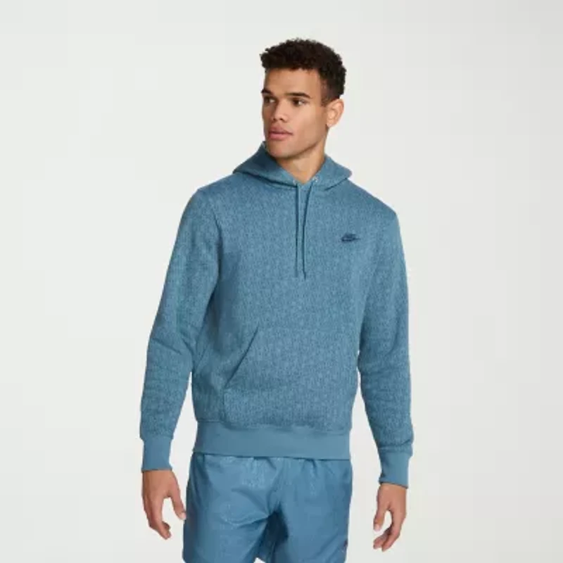 The Nike Club men's big and tall active hoodie delivers everyday comfort with a classic, relaxed feel. Made from soft fleece with a cool futuristic lettering print, it features long sleeves and a front kangaroo pocket for warmth and convenience. Wear it with workout shorts.