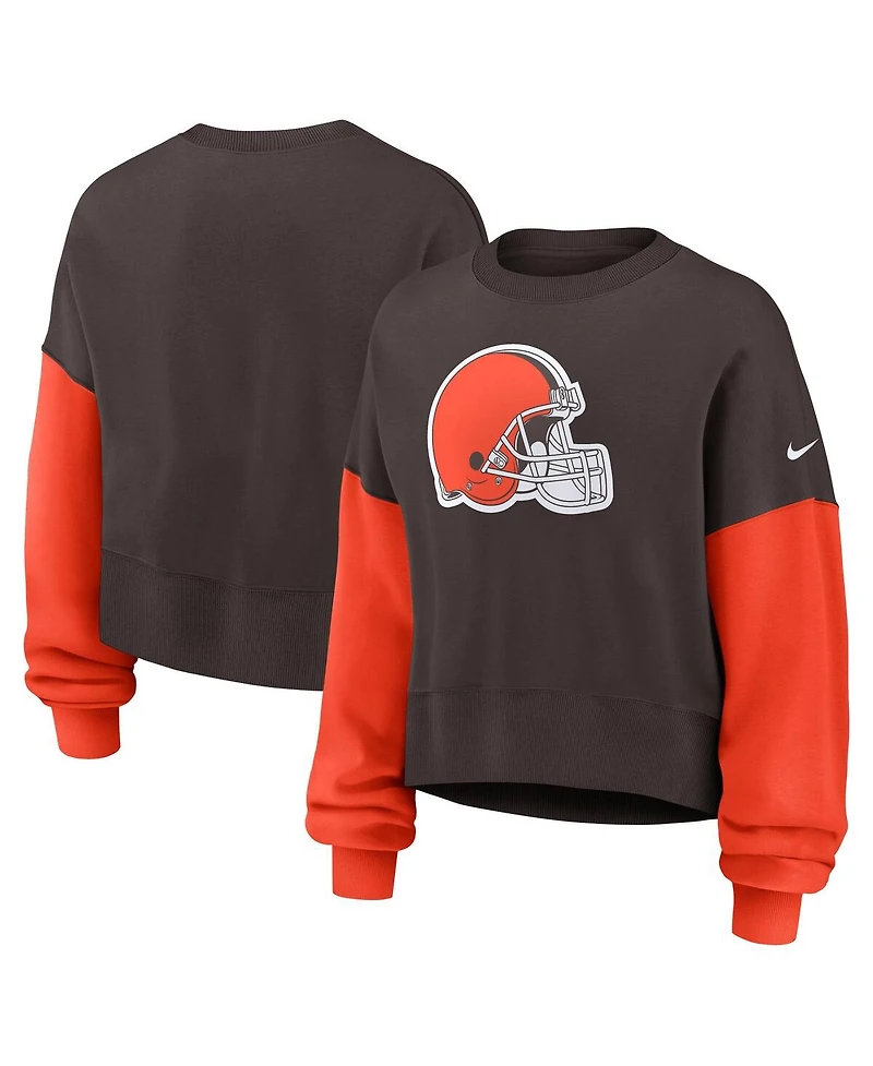 Nike Women's Brown Cleveland Browns Oversized Color Block Pullover Sweatshirt
