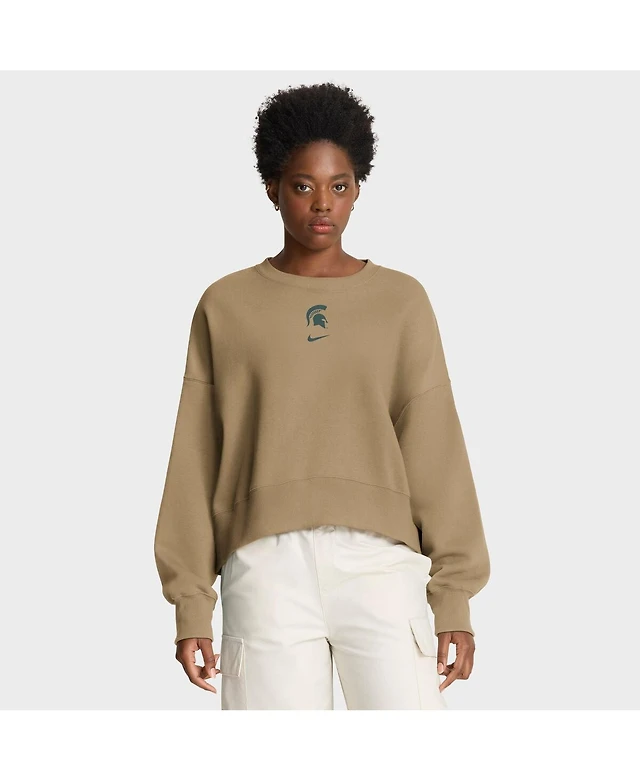 Nike Women's Tan Michigan State Spartans Oversized Phoenix 2-Hit Pullover Sweatshirt