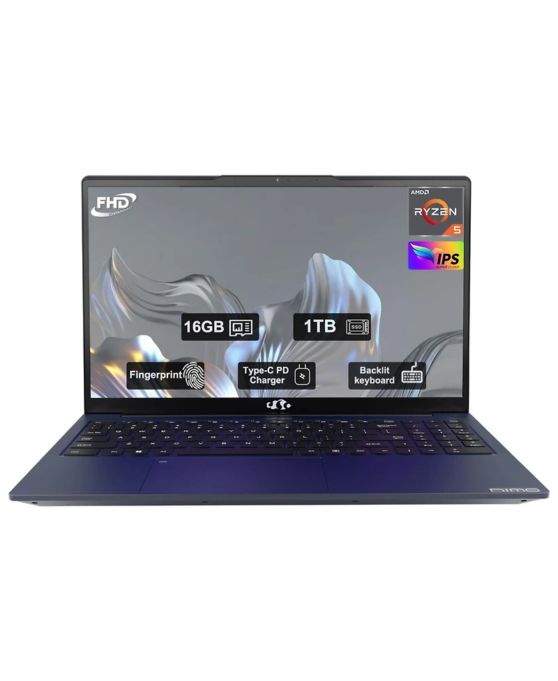 Nimo 15.6'' Fhd Ips Student-Laptop-computer , Amd Ryzen 5(Beat i5-1135G7, 4 Cores Up to 3.7GHz), 65W Type-C, 2 Years Warranty, Fingerprint, Backlit Keyboard, Wi-Fi 5, BT5.2, Blue